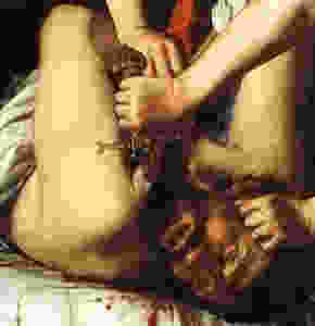 Não há como negar certa fixação que esse quadro, sobretudo essa região zoneada, desperta. Os seios que não se veem, mas se podem adivinhar o volume, a posição, a textura. Um jogo de esconde que desvela, mas não muito, não de todo.