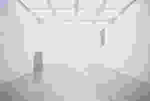 Começo dizendo que o pé-direito quase tende ao infinito. A sala é gigantesca. Dos poucos que entram, muitos saem rapidamente. Sem janelas, a instalação Neither é, sobretudo, um lugar de bloqueio, de impedimento, de entrave. Grandes placas de gesso seguram grades de ferro em formato de losango. Há partes da sala em que grades encimam outra grades. A sobreposição do material, no campo visual, tem a função de ativar, no campo afetivo, certa sensação de insaída.